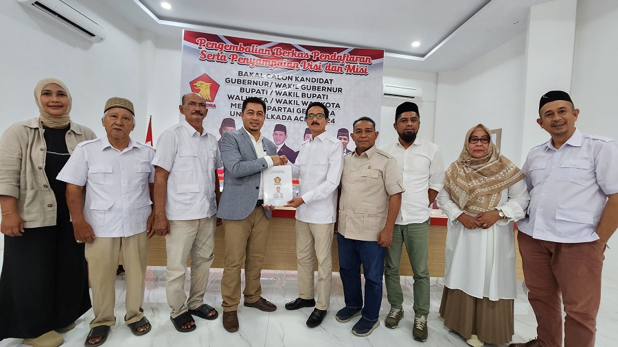 BANDA ACEH | SAH – Bakal Calon (Balon) Bupati Aceh Timur Dr. Firman Dandy mengembalikan berkas pendaftaran sebagai bakal calon bupati Aceh Timur ke Dewan Pimpinan Daerah (DPD) Partai Gerindra Aceh, Jumat, 17 Mei 2024. Selain mengembalikan berkas, Firman Dandy juga menyampaikan visi misi di Kantor DPD Gerindra Aceh di Lueng Bata, Kota Banda Aceh.
